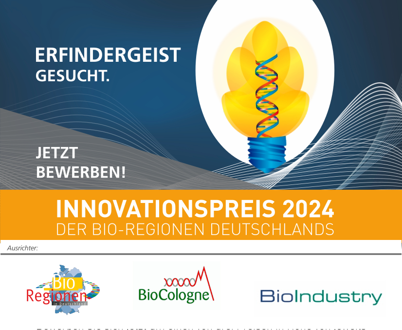 Der Innovationspreis 2024 wird gemeinsam von BioIndustry und BioCologne organisiert - wir wünschen allen Bewerbern viel Glück und Erfolg!